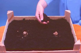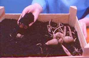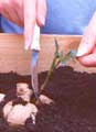 Use a dibber or pencil to make a hole about 25mm (1in.) deep
